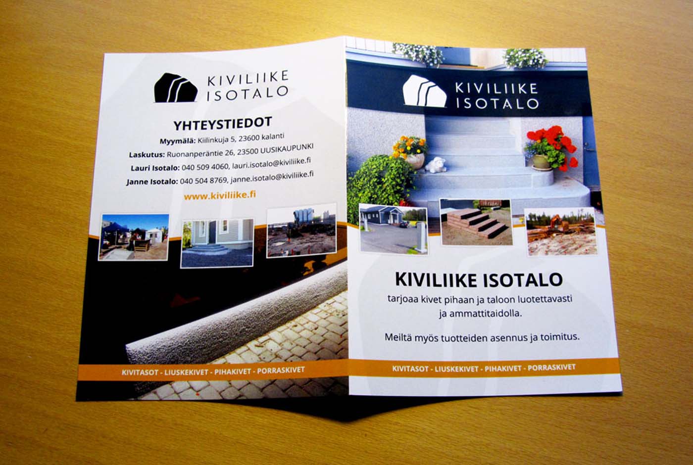 Samalla suunniteltiin uusi, taitettu, A4-kokoinen esite myynnin tueksi. Esite viimeisteltiin UV-lakkauksella, millä saatiin materiaalille vakuuttava ja miellyttävä tuntu.