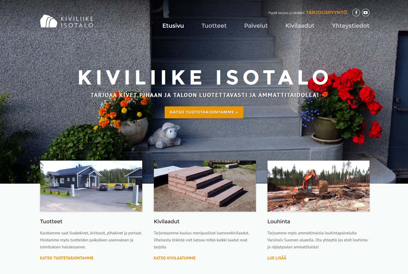 Kiviliike Isotalo lähestyi Mainostoimisto Ilmiötä ajatuksissaan kotisivujen suunnittelu. Yrityksellä ei aiemmin sivuja ollutkaan ja yllättäen vapaana ollut domain kiviliike.fi varattiin yrityksen käyttöön. Kiviliike Isotalon tuote- ja palveluvalikoima on hyvin laaja ja sen esilletuonti oli sivustolla ykkösasia. Tämä onnistuikin hyvin laajan kuva- ja videomateriaalin avulla, jota yritykseltä löytyi jo itseltään.